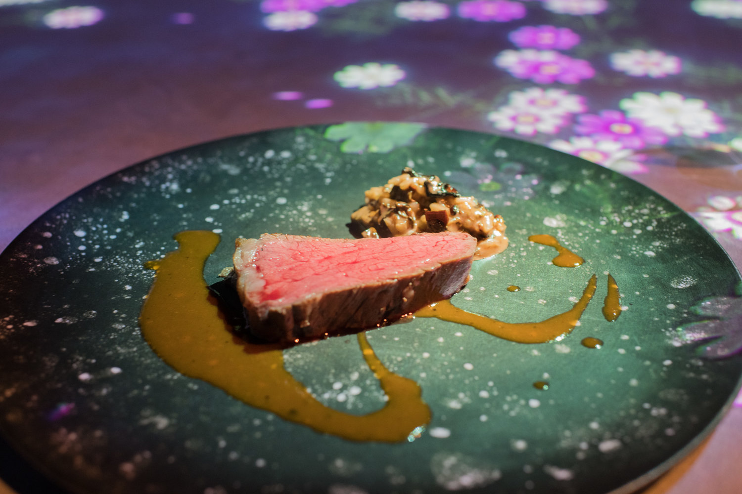 Sagaya, a restaurant nestled in the Puzzle Building in Ginza that serves various dishes of Saga Beef bought some of teamLab’s artwork and dedicated a room to do a collaboration of digital art and magnificent food.